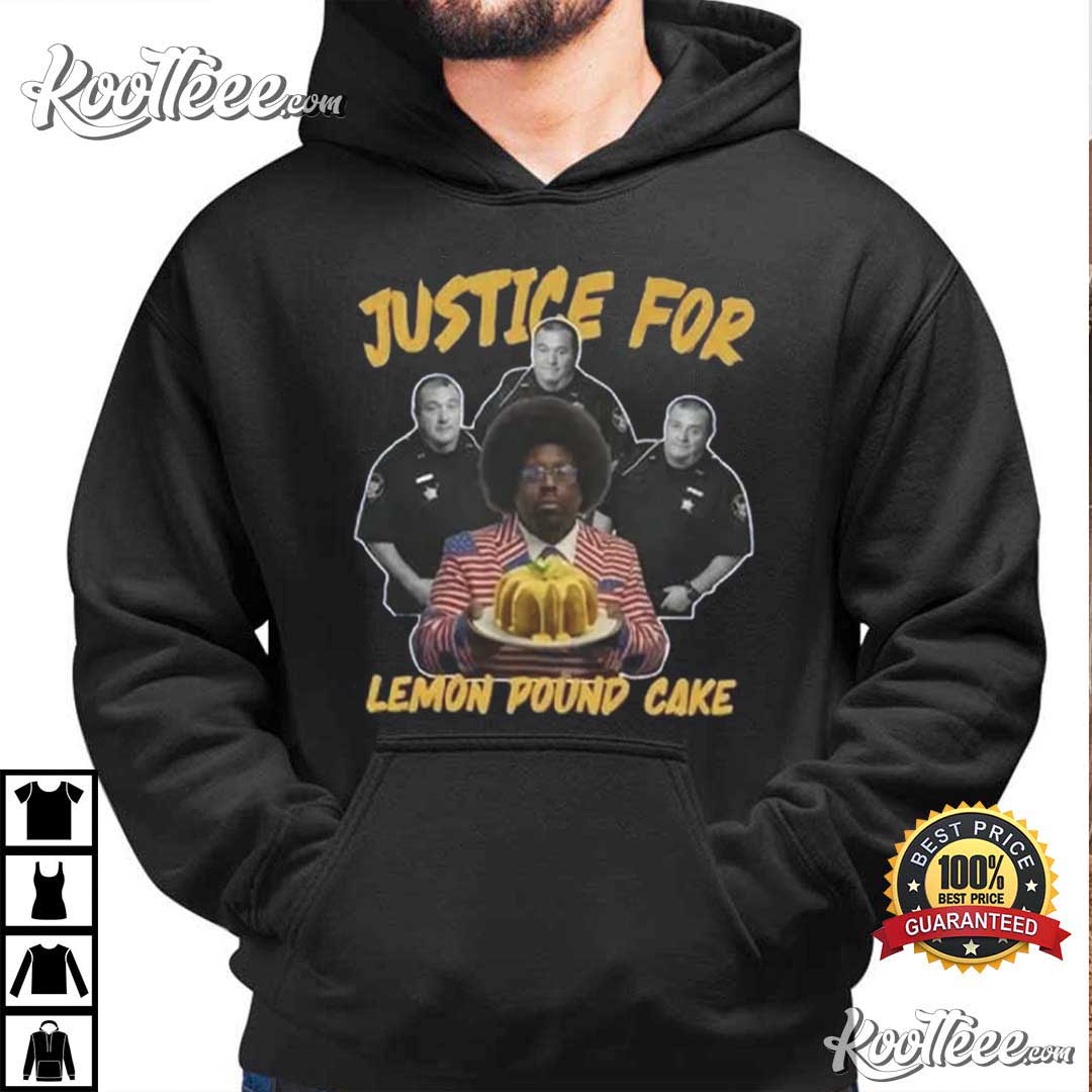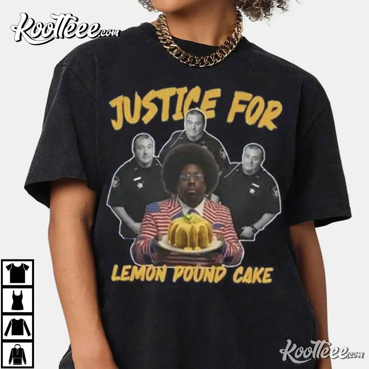 This shirt is based on rapper Afroman and commemorates the popular “Lemon Pound Cake” story that traveled throughout social media and got people talking about artistic freedom, satire, and how pop culture and real life can be so odd.