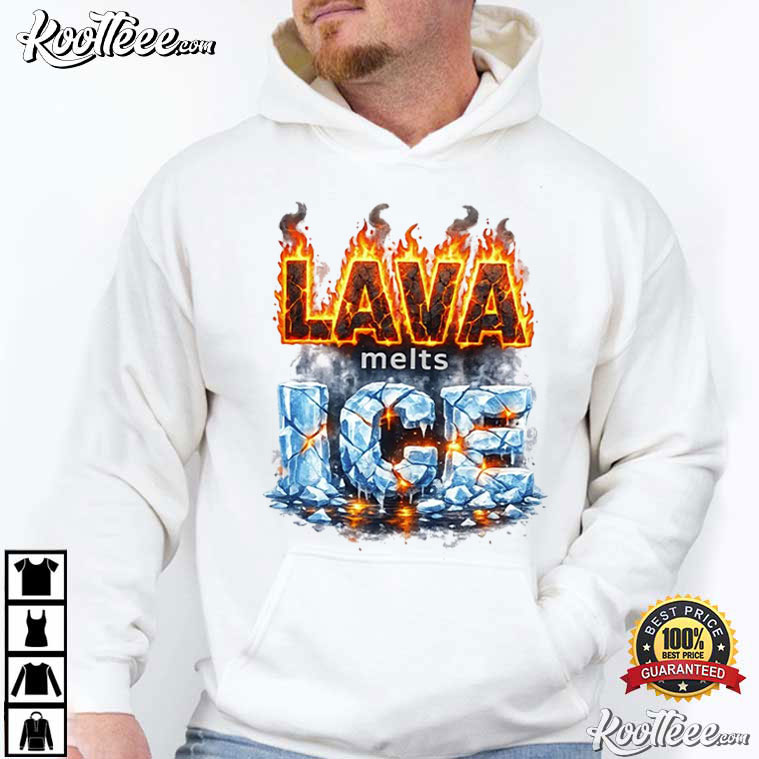 The Anti Trump Lava Melts Ice T-Shirt gets its point across without speaking a single extra word. The letters “LAVA” are on fire above broken, melting “ICE” that looks like it came from broken glacier rocks. It’s the best visual narrative there is: heat vs. cold, fire vs. law, and movement against. stillness.