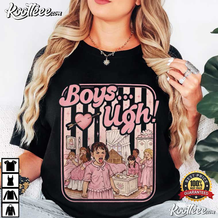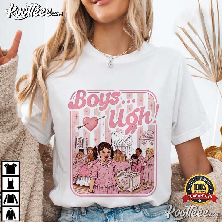 The Boys Ugh Funny Valentine 90s Movie Quote T-Shirt perfectly depicts that mood: silly, snarky, and terribly relatable. This shirt is for people who like funny things with a little bit of attitude. It was inspired by the look of classic 90s movies and old storybook images.