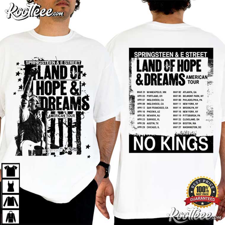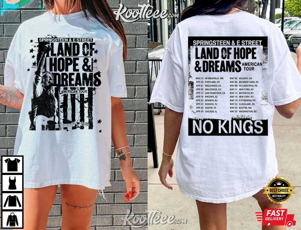 The Bruce Springsteen Land Of Hope And Dreams Tour 2026 T-Shirt portrays the feeling of being in a stadium singing along to “Born to Run” or the emotional force of a Springsteen song. This tour-style graphic shirt pays tribute to rock history, live performance culture, and the eternal spirit of Bruce Springsteen’s music. It also honors the famous stage presence of Bruce Springsteen and the message of hope that runs through all of his songs.