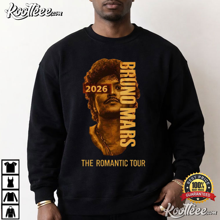 The Bruno Mars of 2026 The Romantic Tour Pop Music T-Shirt pays tribute to that style of music with a creative graphic design based on souvenirs from concert tours. The shirt includes a beautiful portrait design and old-fashioned typography that makes you think of the excitement of live events and how Bruno Mars’ music will always be popular.