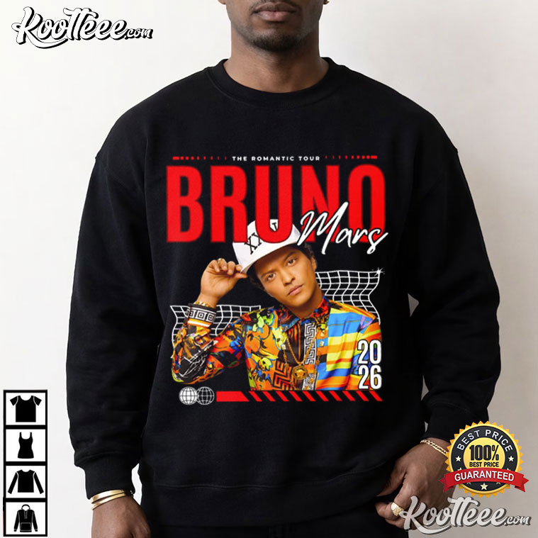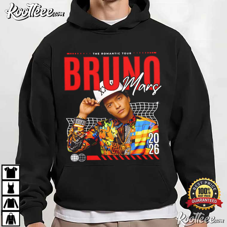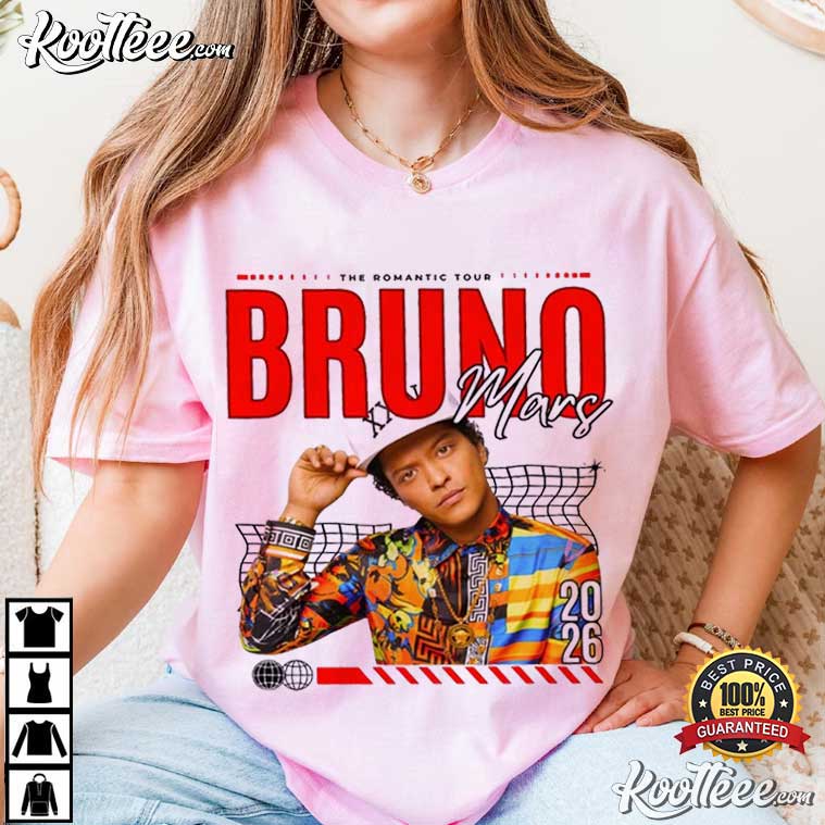 Bruno Mars is one of the few modern pop performers that has his charm, vocal power, and stage presence. Bruno Mars has a huge fan following throughout the world that transcends generations. He is known for his spectacular live shows and chart-topping tunes. The Bruno Mars Romantic Tour Pop Singer Inspired T-Shirt showcases the elegance and intensity of one of pop’s most exciting artists while also recognizing the enduring appeal of his music.