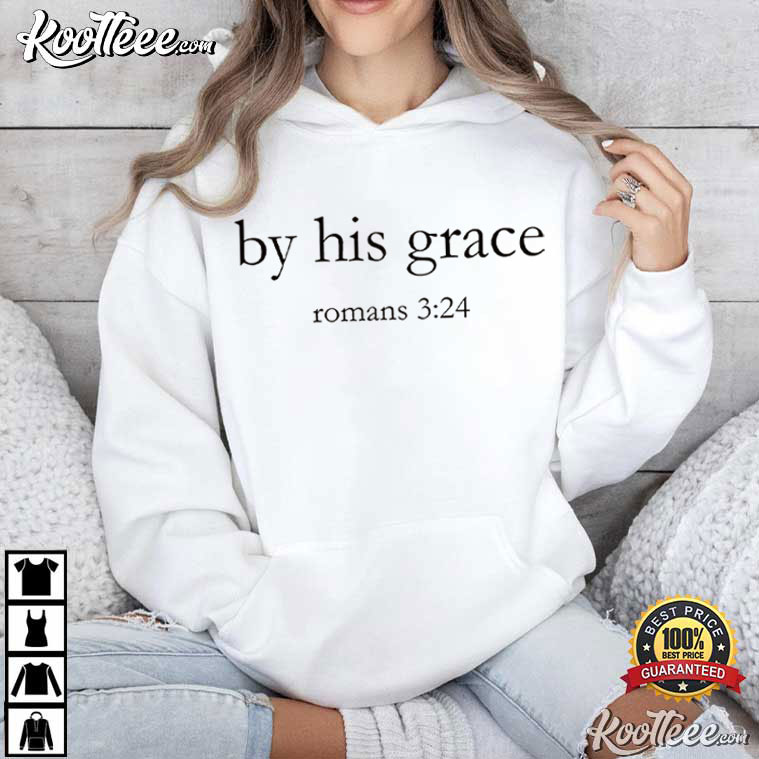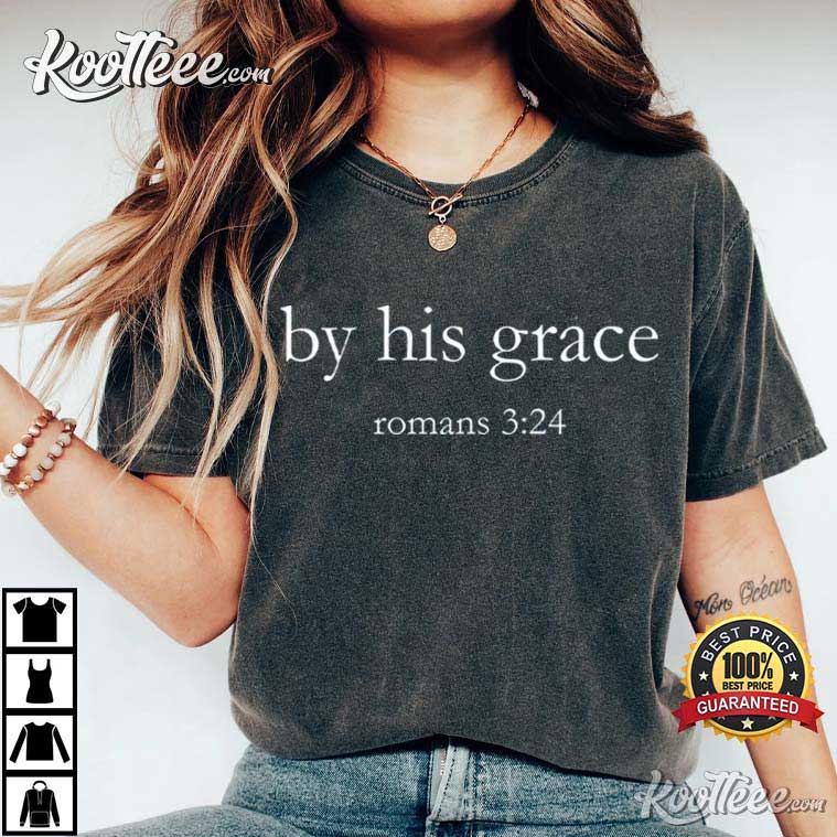 Millions of Christians around the world find great meaning in the little words on the By His Grace Bible Verse Christian T-Shirt. The saying “By His Grace—Romans 3:24” is printed on the front of the shirt.