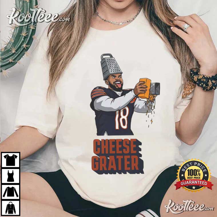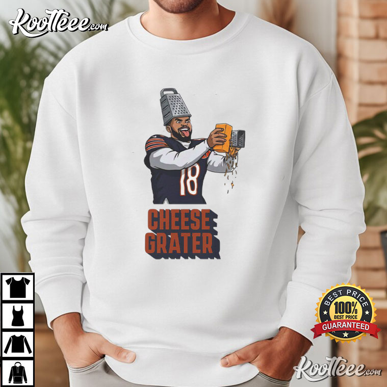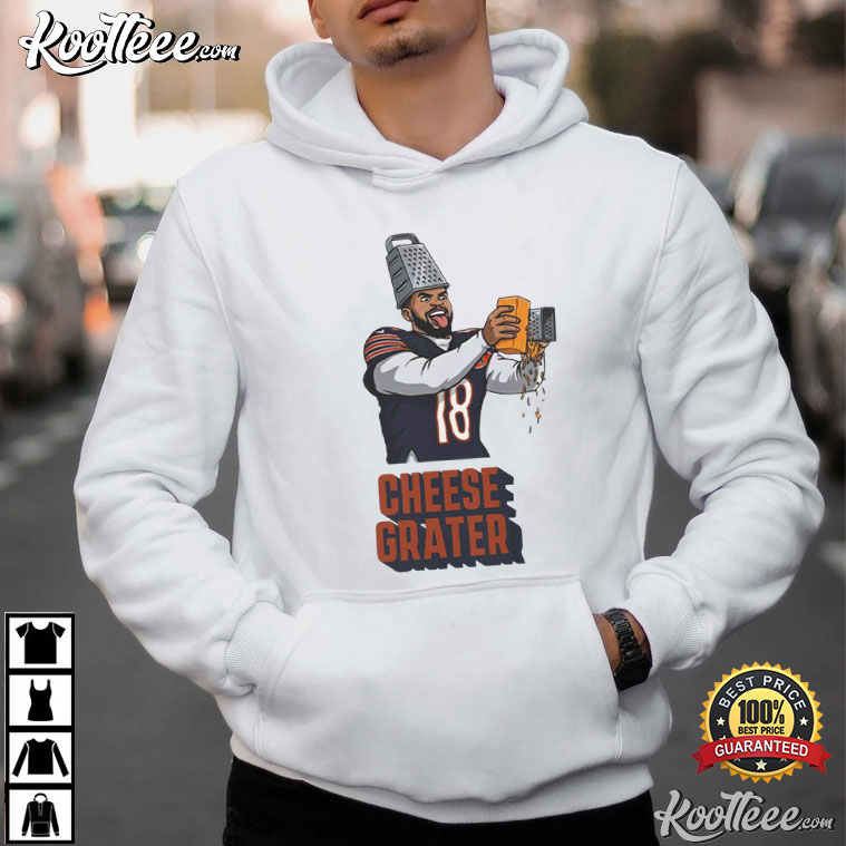 The Caleb Williams Cheese Grater Funny Chicago Football Fan T-Shirt is a great way to show off one of the funniest and most well-known memes that have come out of Chicago football fans in the last few seasons. It combines excitement on the field, jokes from the internet, and fan ingenuity into one big graphic that looks great on game day, at a tailgate, or when going through sports Twitter.