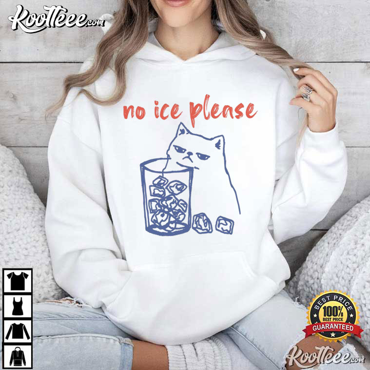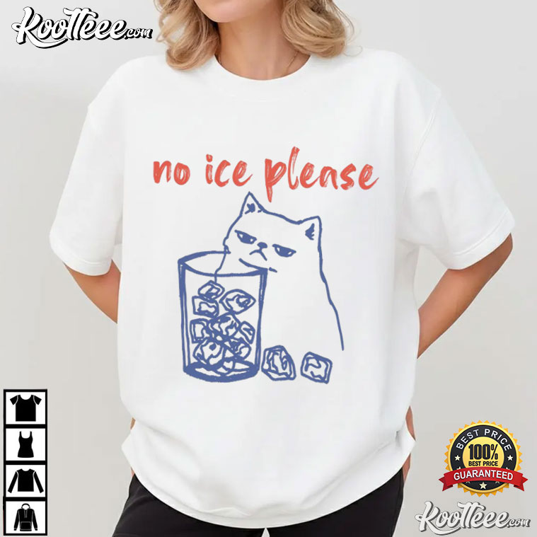 The Cat No Ice Pro Immigration Abolish ICE Political T-Shirt says something important in a funny and loving way without yelling. There is a simple, sketch-style cat looking at a tumbler full of ice cubes with the words “no ice please” written above it. At first view, it’s cute; at second glance, it’s clever; and once you get the allusion, it makes sense.