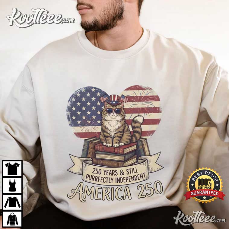 The Cat Purrfectly Independent America 250 Years Patriotic T-Shirt embodies the spirit of the impending America 250 anniversary with wit and charm. It’s bold, festive, and designed for patriotic Americans who also happen to be unashamed cat enthusiasts.