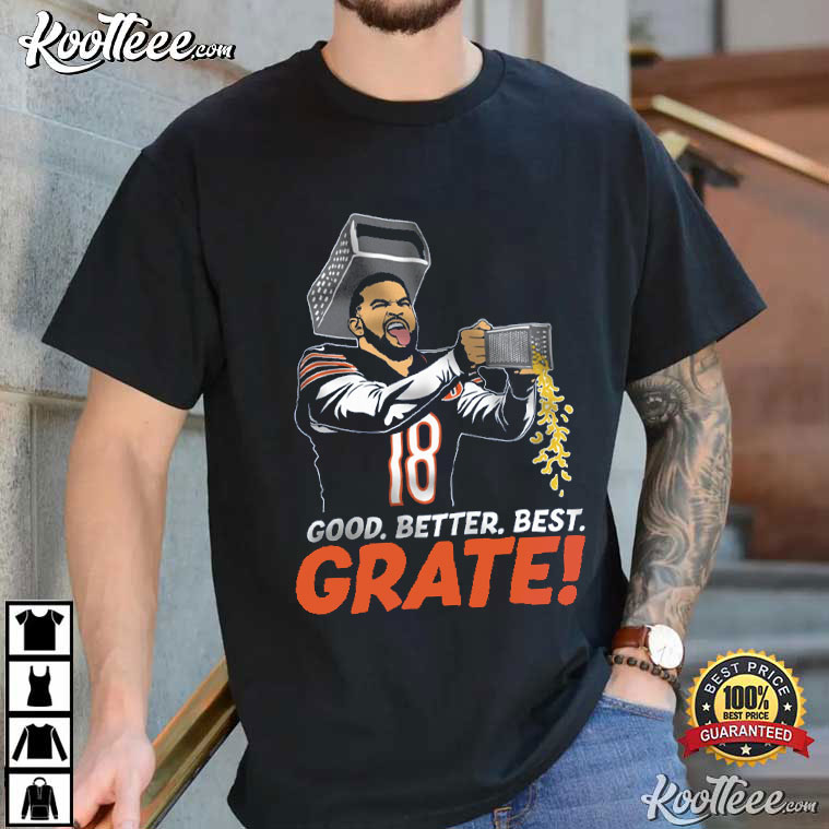 The Chicago Bears Football Caleb Cheese Grater Good Better Best T-Shirt is the perfect mix of football style and meme culture. It’s for fans who can laugh, cheer, and clap back all at the same time. This shirt converts an online joke about Chicago football into bold game-day fashion. It’s based on one of the most popular jokes about Chicago football right now.