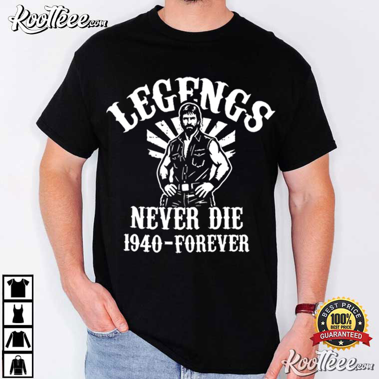 Chuck Norris Legends Never Die 1940 Forever T-Shirt – black graphic tees, vintage t shirts