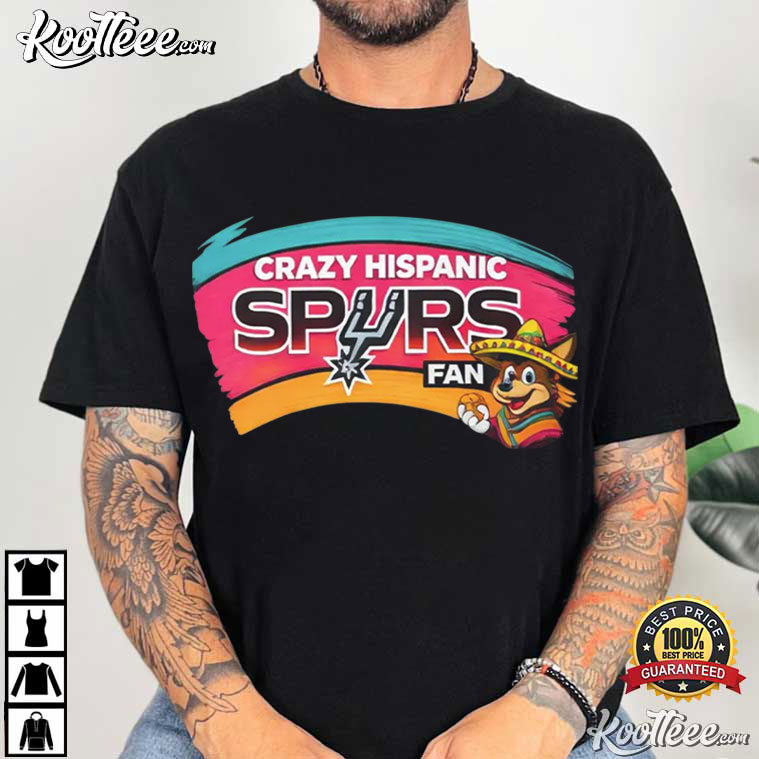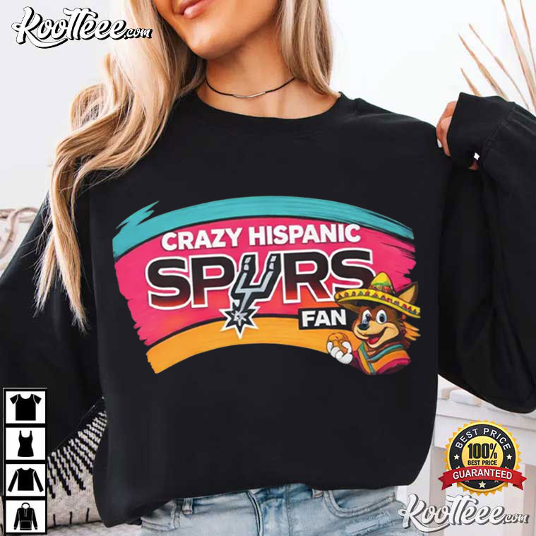 The words “Crazy Hispanic Spurs Fan” are in bold lettering on this shirt. It shows how excited devoted fans are. This design makes it clear where your love for basketball resides, whether you’re watching the game with friends, going to a live game, or just showing off your team spirit around town.