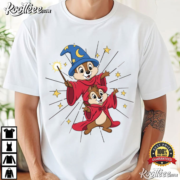 Disney Magic Kingdom Sorcerer Chip And Dale Wizard T-Shirt – animated graphic tees, vintage cartoon t shirts, funny cartoon t shirts
