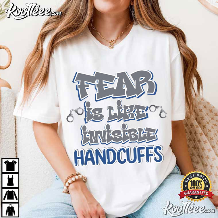It says on the image, “Fear Is Like Invisible Handcuffs.” The message becomes visual when handcuffs are drawn into the artwork. Fear doesn’t always show, but it might still stop you from doing things.