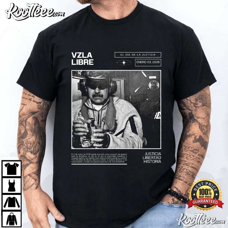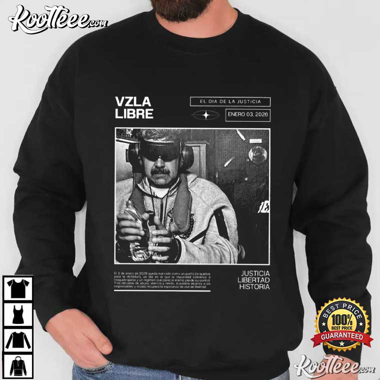 A black-and-white picture of Nicolás Maduro that looks like a newspaper front page is at the core of the design. The Spanish words around it—”VZLA Libre,” “El Día de la Justicia,” and “Justicia · Libertad · Historia”—are the same ones that Venezuelans use in rallies and civic groups that advocate for justice and democratic reform. The old-fashioned headline style makes it seem like a historical moment, as if it were a turning point instead of a short-lived headline.