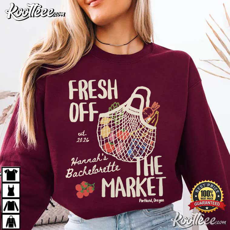 The “Fresh Off The Market” Bachelorette Party T-Shirt adds a new twist to bridal celebrations by blending a farmer’s market look with funny bridal jokes.