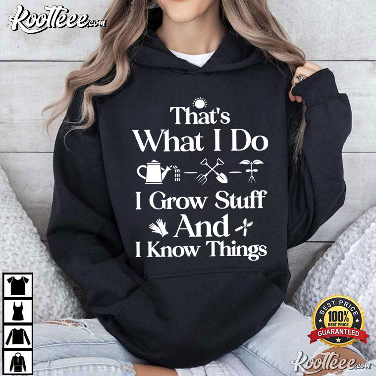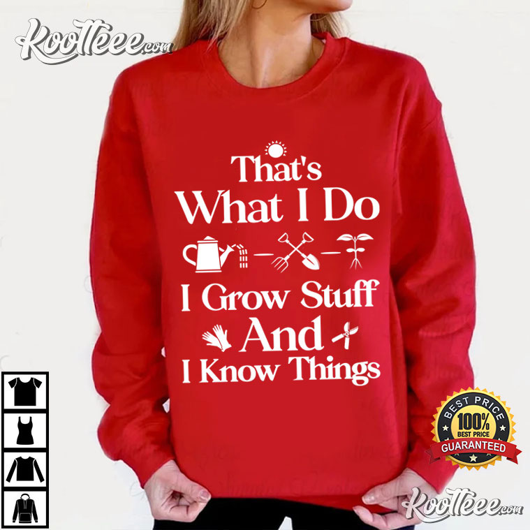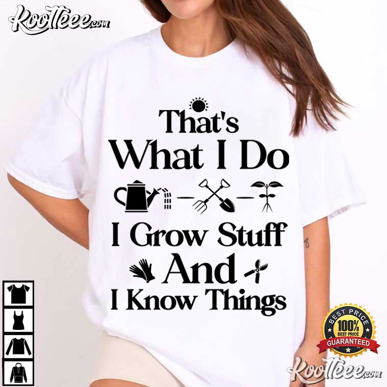This shirt will undoubtedly feel like it was made specifically for you if you spend your weekends watering plants, checking on seedlings, and proudly watching tomatoes mature in the sun. The Garden That’s What I Do I Grow Stuff And I Know Things T-Shirt mixes humor with the pride that every gardener feels when their hard work changes dirt into something living and growing.