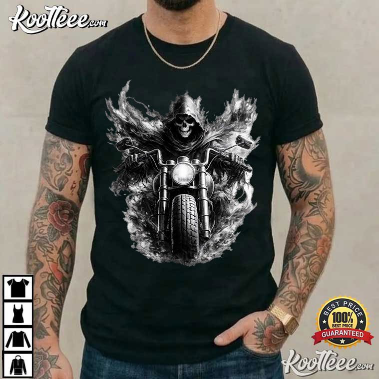 Grim Reaper Motorcycle Skull Biker T-Shirt – black graphic tees, vintage t shirts