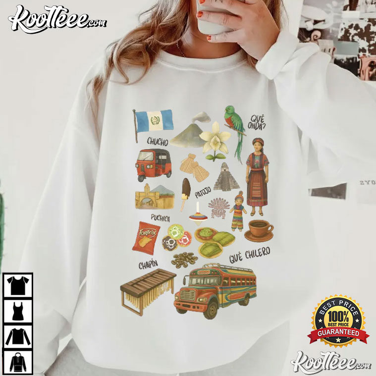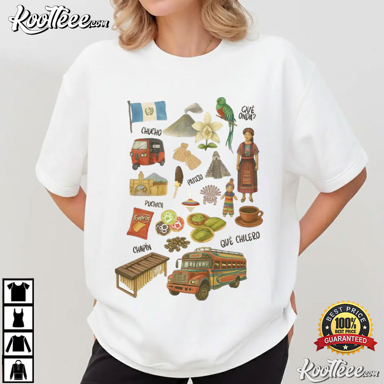The Guatemalan Central American Cultural T-Shirt is a wearable tribute to Guatemala, including its customs, scenery, language, cuisine, and daily life. This shirt, created with a mosaic of famous Guatemalan themes, feels like a postcard from home.