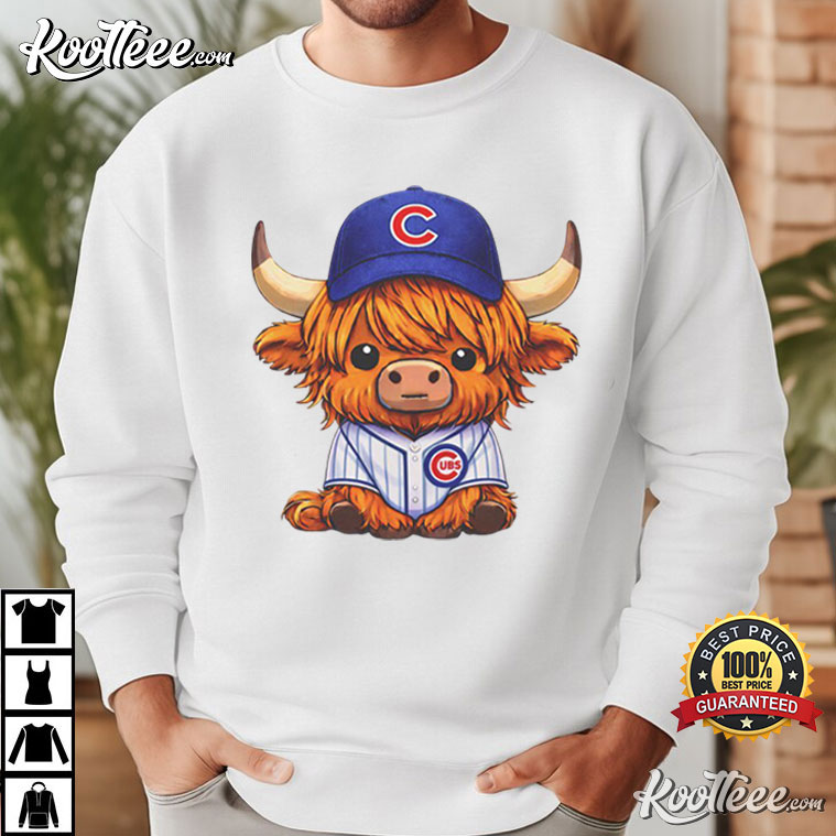 Highland Cow In Cubs Baseball Jersey Cute Mascot T-Shirt