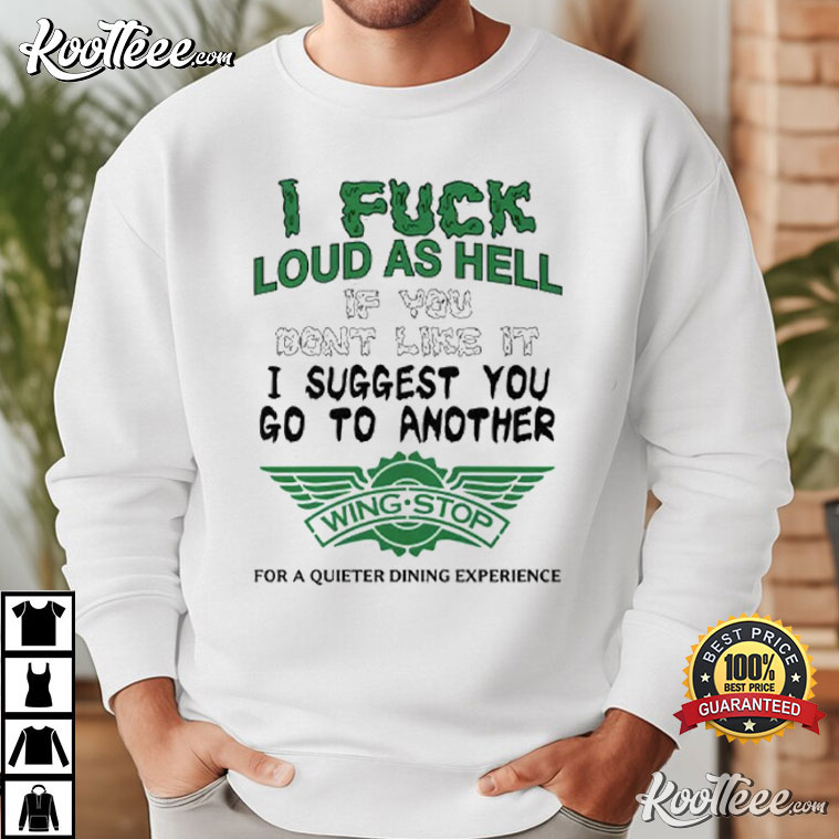 The I Fuck Loud As Hell I Suggest You Go To Another Wingstop T-Shirt is definitely in the second group. This shirt’s design is meant to be over-the-top, with silly text and branding that are inspired by viral internet humor and parody culture.