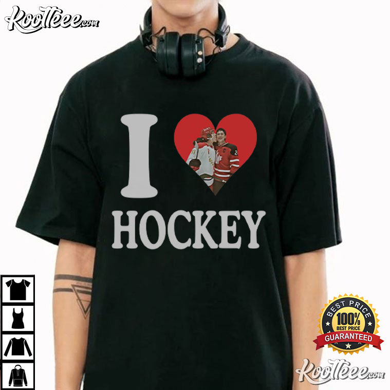 I Love Hockey Hudson Williams Connor Storrie Heated Rivalry T-Shirt – film t shirts, movie themed shirts