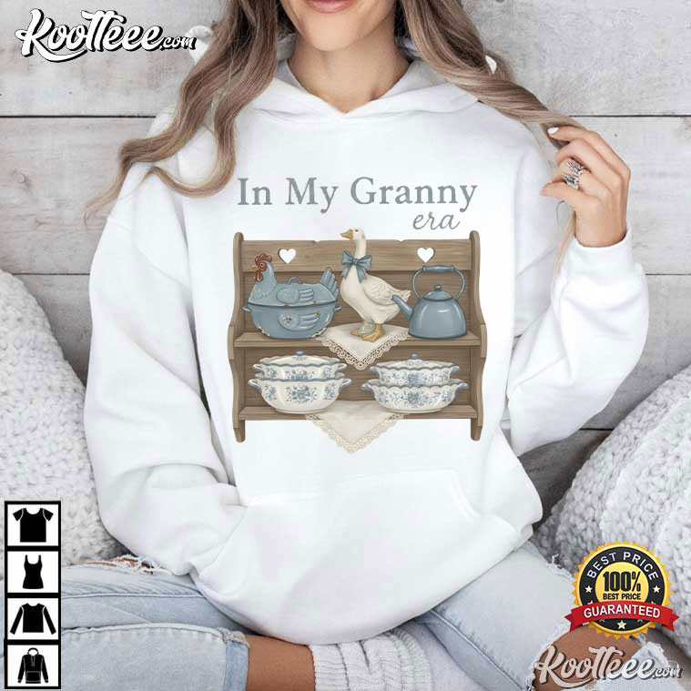 A granny-style kitchen has a special type of comfort: the subtle clink of ceramic dishes, the kettle always ready, and shelves full of carefully picked items that make it feel like home. The In My Granny Era Vintage Goose Kitchen Shelf Art T-Shirt is a perfect example of that feeling. This design turns ordinary warmth into something you can wear. It’s sweet, tranquil, and shamelessly nostalgic.