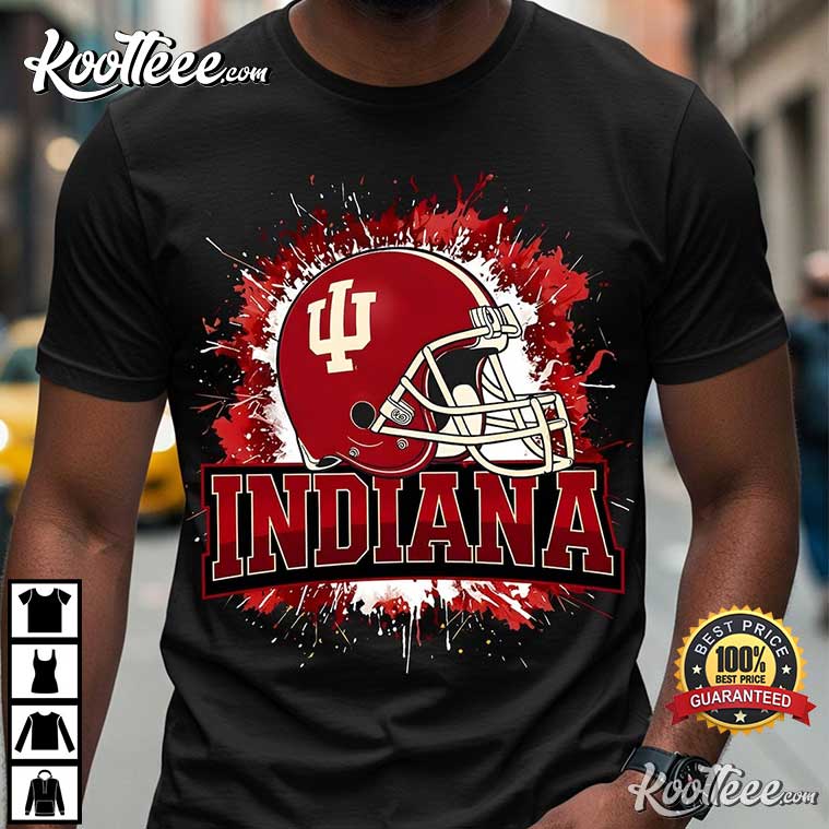 Indiana Football Helmet Crimson Red Splatter T-Shirt – football gear, vintage NFL shirts