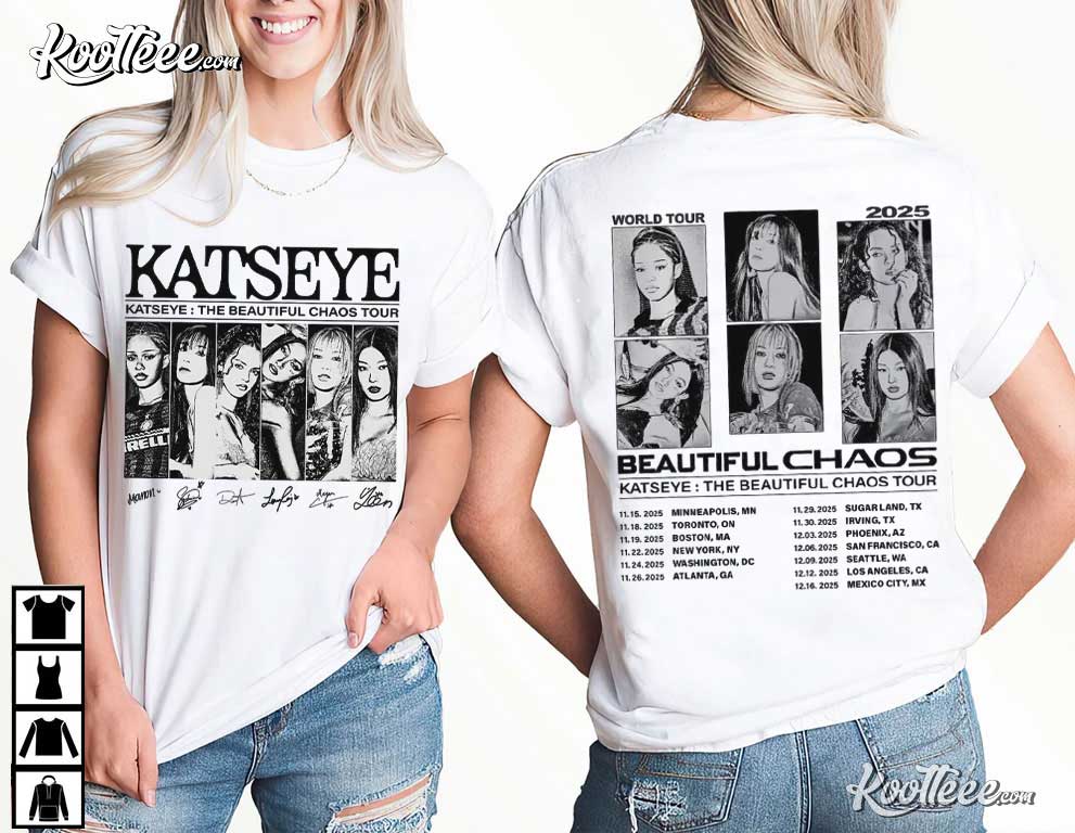 KATSEYE Album The Beautiful Chaos Tour Kpop Girl Group T-Shirt – music themed shirts, band t shirts