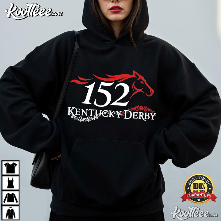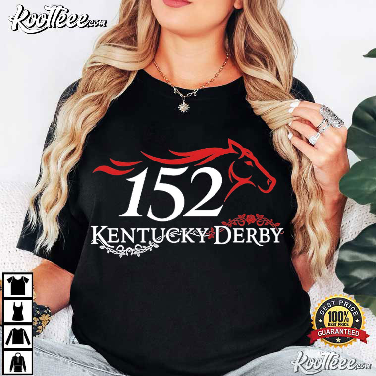 The Kentucky Derby Louisville Horse event Fan 152 T-Shirt has a cool graphic design with a silhouette of a racing horse and big letters that say “152nd Running of the Kentucky Derby.” It commemorates the thrill of the famous event.