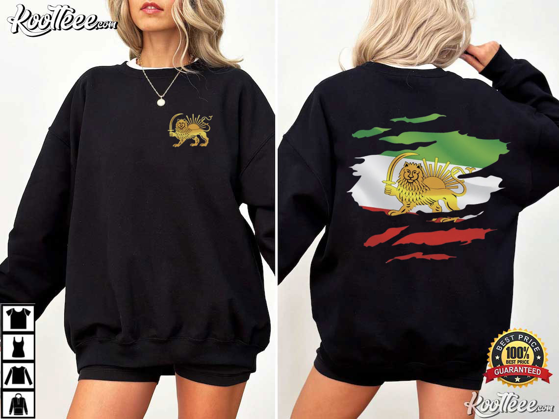 The Lion and the Sun Iran Shir-o-Khorshid The Persian Flag T-Shirt is more than just a shirt; it’s a way to show off your Persian history, identity, and cultural memory. This shirt is for people who respect tradition in detail. It combines bold images with centuries of significance to create something that is both powerful and timelessly lovely.