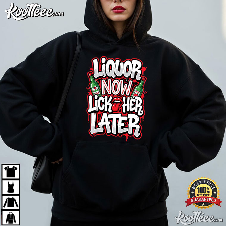 Liquor Now Lick Her Later Bachelor Party Groom T-Shirt – black graphic tees, vintage t shirts