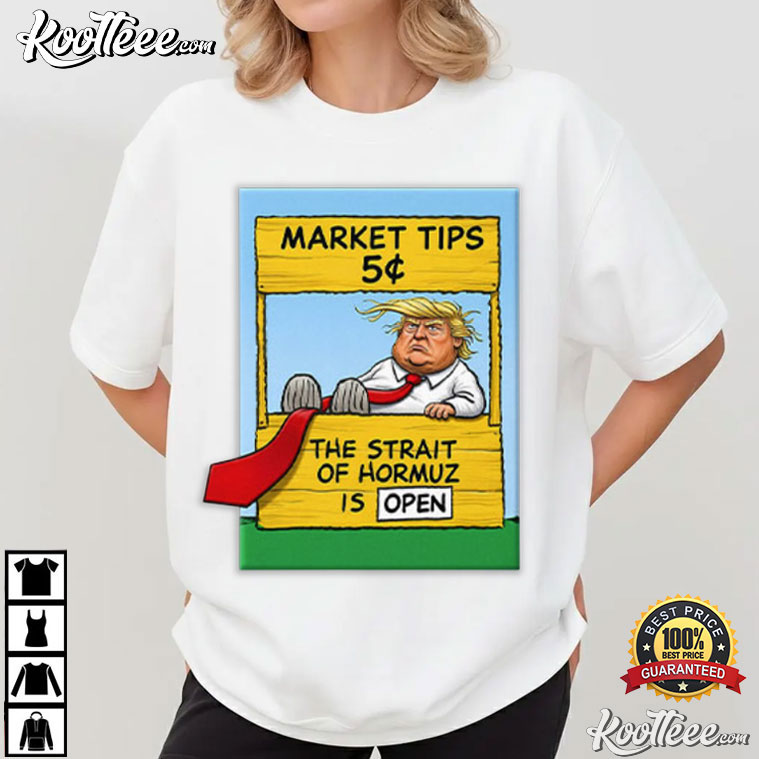 Market Tips The Strait Of Hormuz Is Open Trump Parody T-Shirt – black graphic tees, vintage t shirts