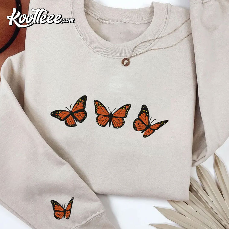 Some designs don’t need words to work. The Monarch Butterfly Botanical Embroidered Sweatshirt talks via nature in a way that is soft, detailed, and quietly strong. This garment has three embroidered monarch butterflies on the chest and a small accent butterfly on the sleeve. It combines a simple look with profound symbols.