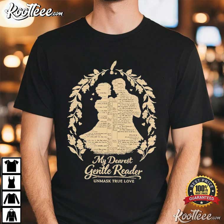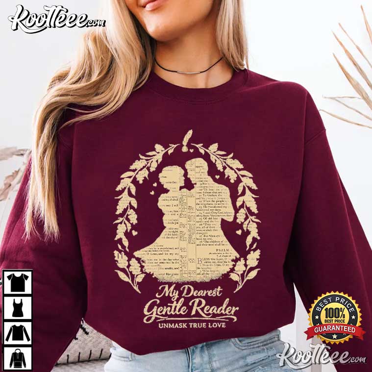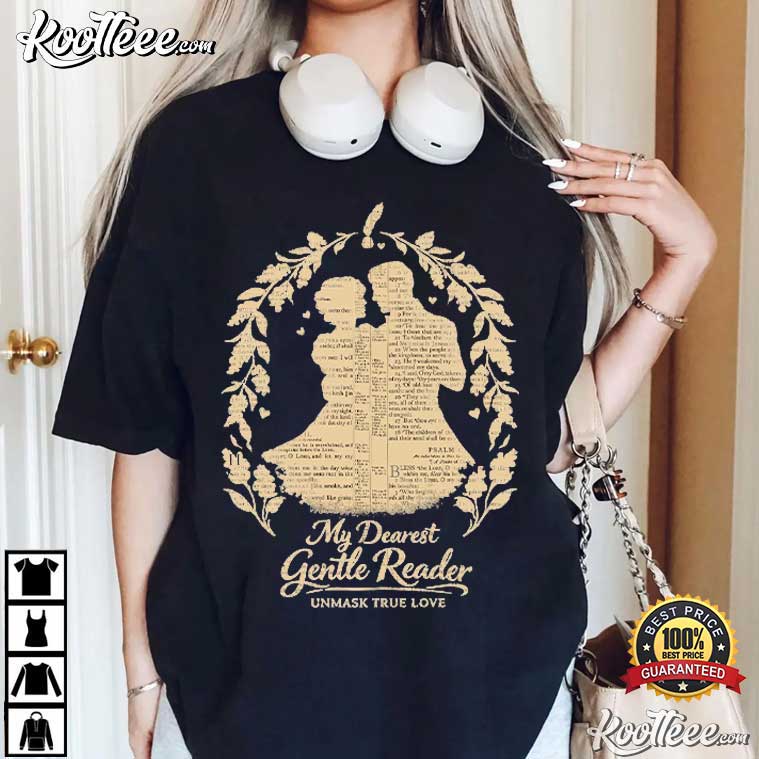 The My Dearest Gentle Reader Book Lover T-Shirt is for people who love the calm drama of turning pages, the closeness of stories told via ink, and the eternal romanticism of classic literature. This blouse is elegant, symbolic, and very nostalgic. It would look great in a library with candles or on the couch with your favorite book.