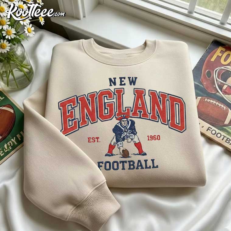 The New England Patriot Football Vintage Embroidered Sweatshirt is a warm, daily item that brings back memories of old-school football. This design is inspired by the early history of the New England Patriots. It has arched text, a traditional football position, and a soft, lived-in color palette that makes it feel like it has been in your closet for years.