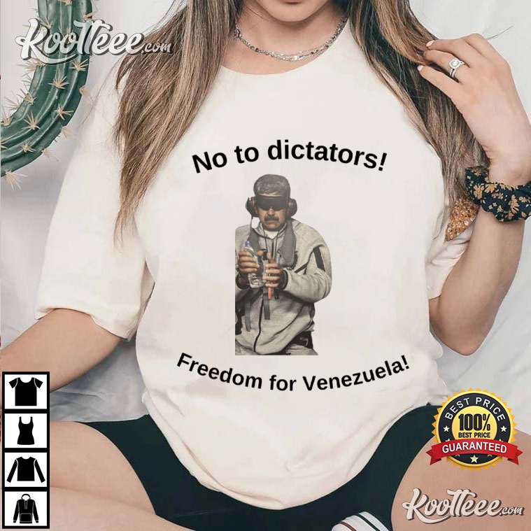 Stand up for freedom and say “No to Dictators!” loud and clear. No To Dictators Freedom For Venezuela Political Maduro Protest T-Shirt a meaningful item of clothing that shows support for one of the most talked-about political problems in the world right now. This shirt is more than just a piece of clothing; it helps you show your support for human rights and democratic ideals while wearing a statement that counts.