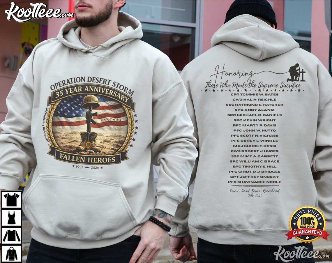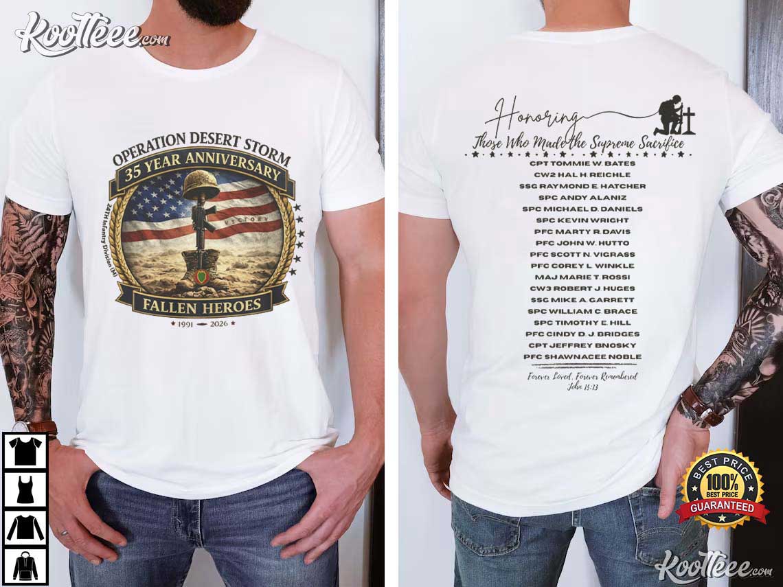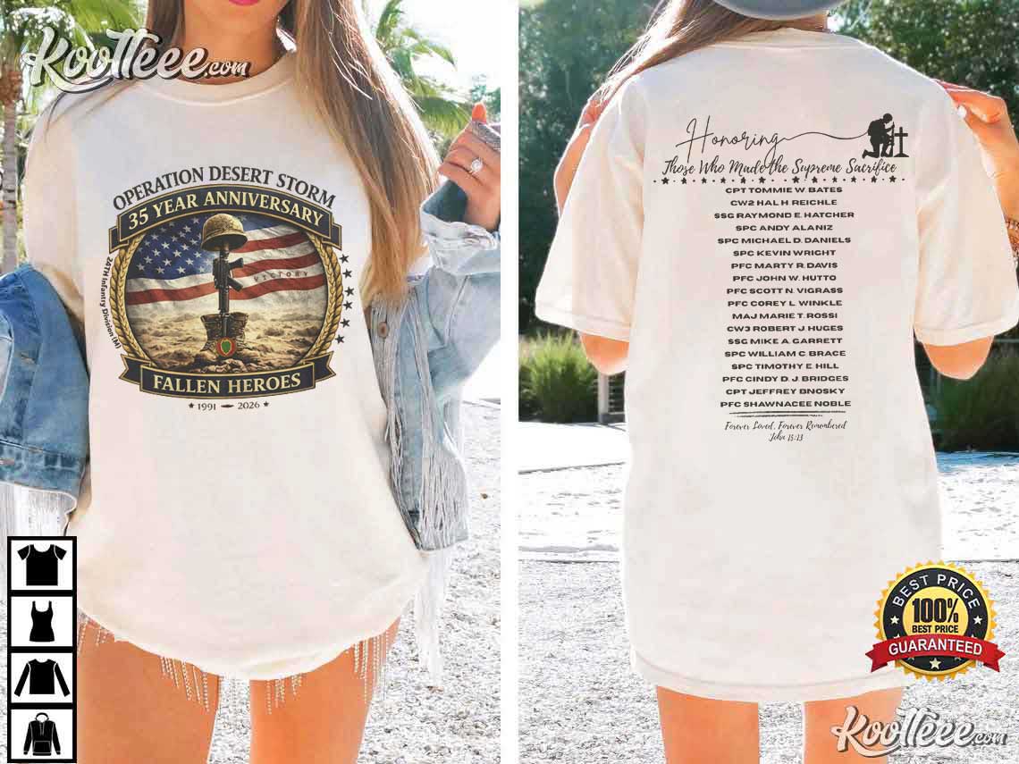The Operation Desert Storm Fallen Heroes 35 Year Anniversary T-Shirt was developed to honor those who participated in the Gulf War and remember the heroes who died in the line of duty.