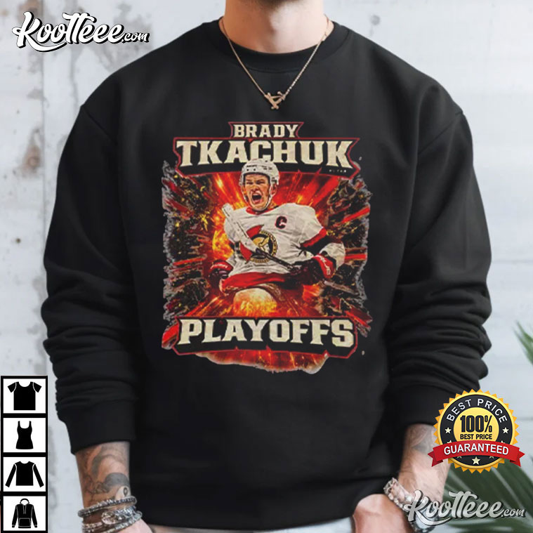 The Ottawa Senators Brady Tkachuk Playoffs Hockey Player T-Shirt isn’t for people who are quiet fans.