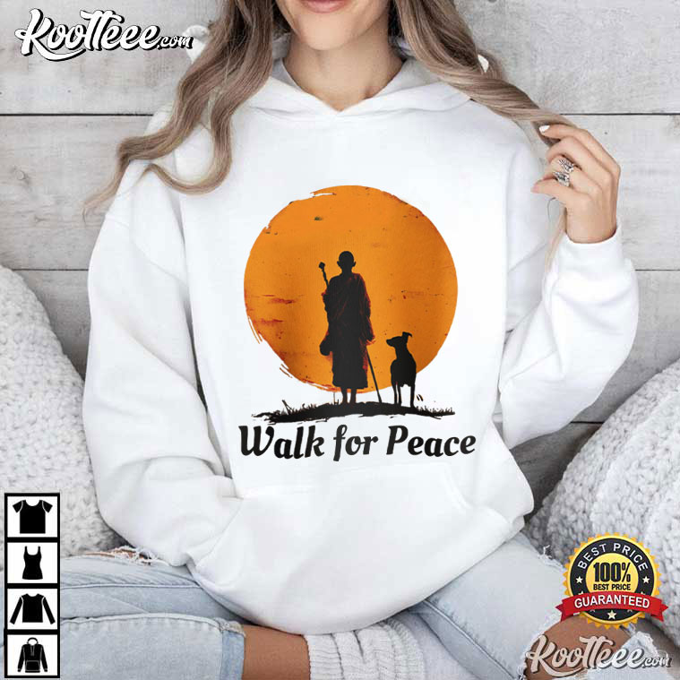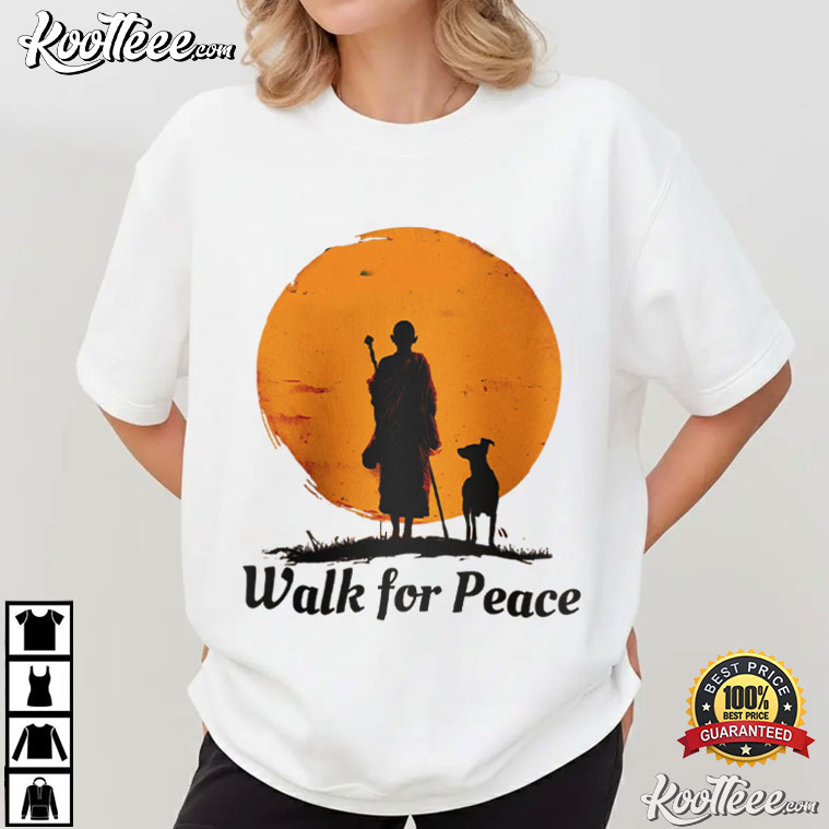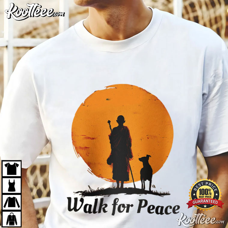 People who appreciate serenity, compassion, and intention will love the Peace Walking Monk and Dog Minimalist Zen Art T-Shirt. The shirt shows a single moment of peace: a monk walking forward with a loyal dog under the words “Walk for Peace.” The silhouette is clean and the circle is warm and sun-like. It’s simple, meaningful, and extremely symbolic—perfect for everyday wear that doesn’t make a lot of noise.