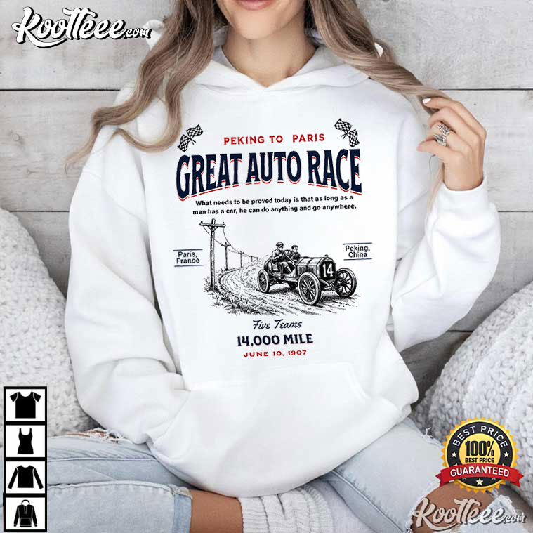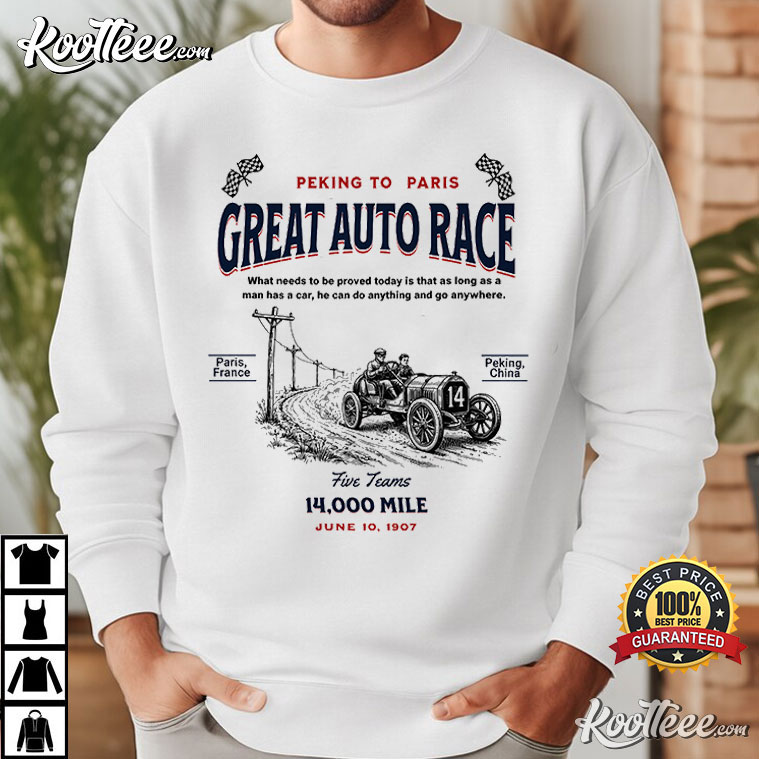 The Peking To Paris 14,000 Mile Vintage Auto Race T-Shirt commemorates one of the boldest quests in automotive history—the legendary 1907 endurance race that took machines and drivers to their farthest limits. The rich vintage photo, archaic script, and historical references make this shirt look like it came straight out of an early 20th century expedition journal.