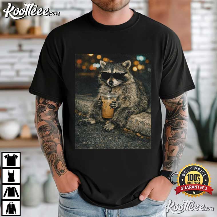Raccoon Drinking Iced Coffee Animal Meme T-Shirt – black graphic tees, vintage t shirts