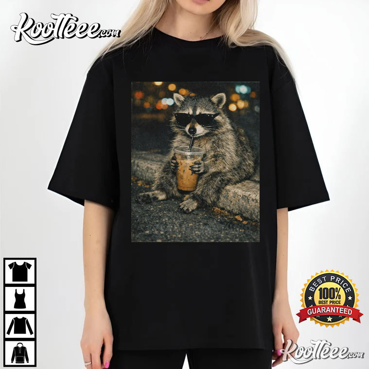 The Raccoon Drinking Iced Coffee Animal Meme T-Shirt shows a moment that is far too relatable: a raccoon that is a little out of control, holding an iced coffee, and experiencing its best life in a big metropolis at night. People can’t stop looking at it because it’s hilarious, a touch wild, and strangely beautiful.