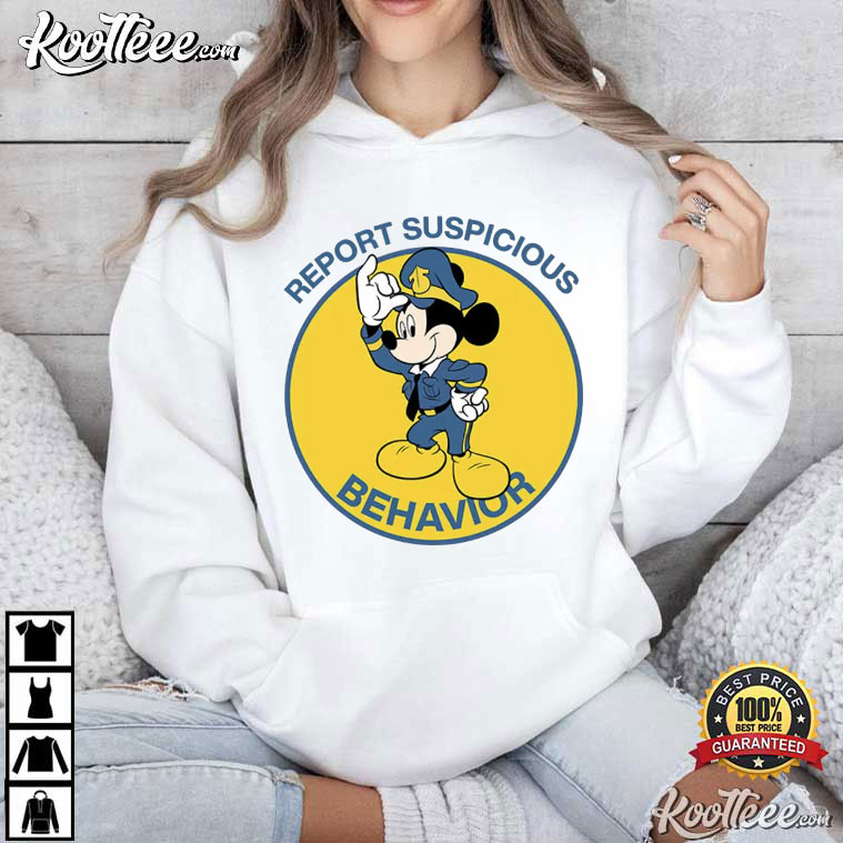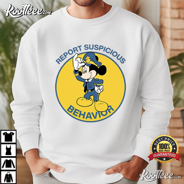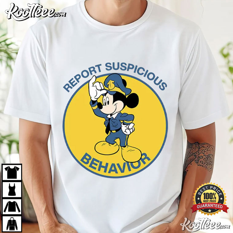 Report Suspicious Behavior Mickey Mouse Cop T-Shirt – animated graphic tees, vintage cartoon t shirts, funny cartoon t shirts