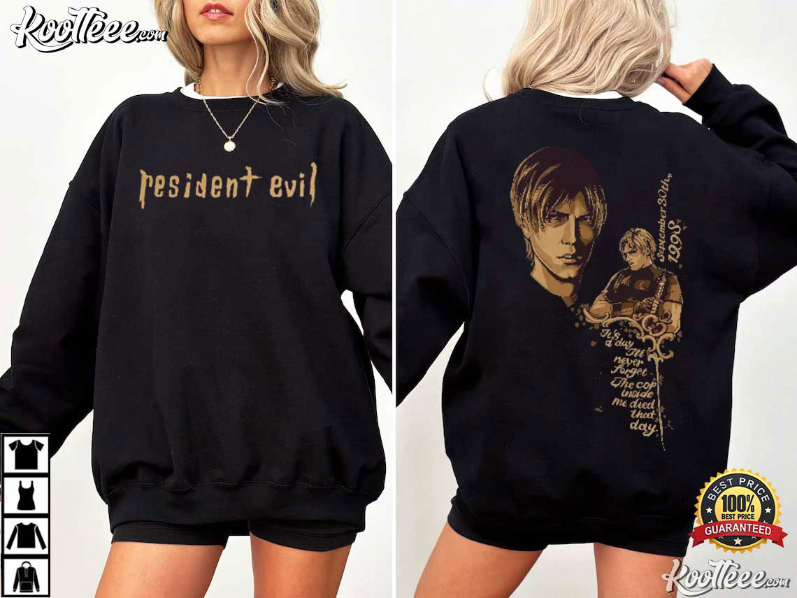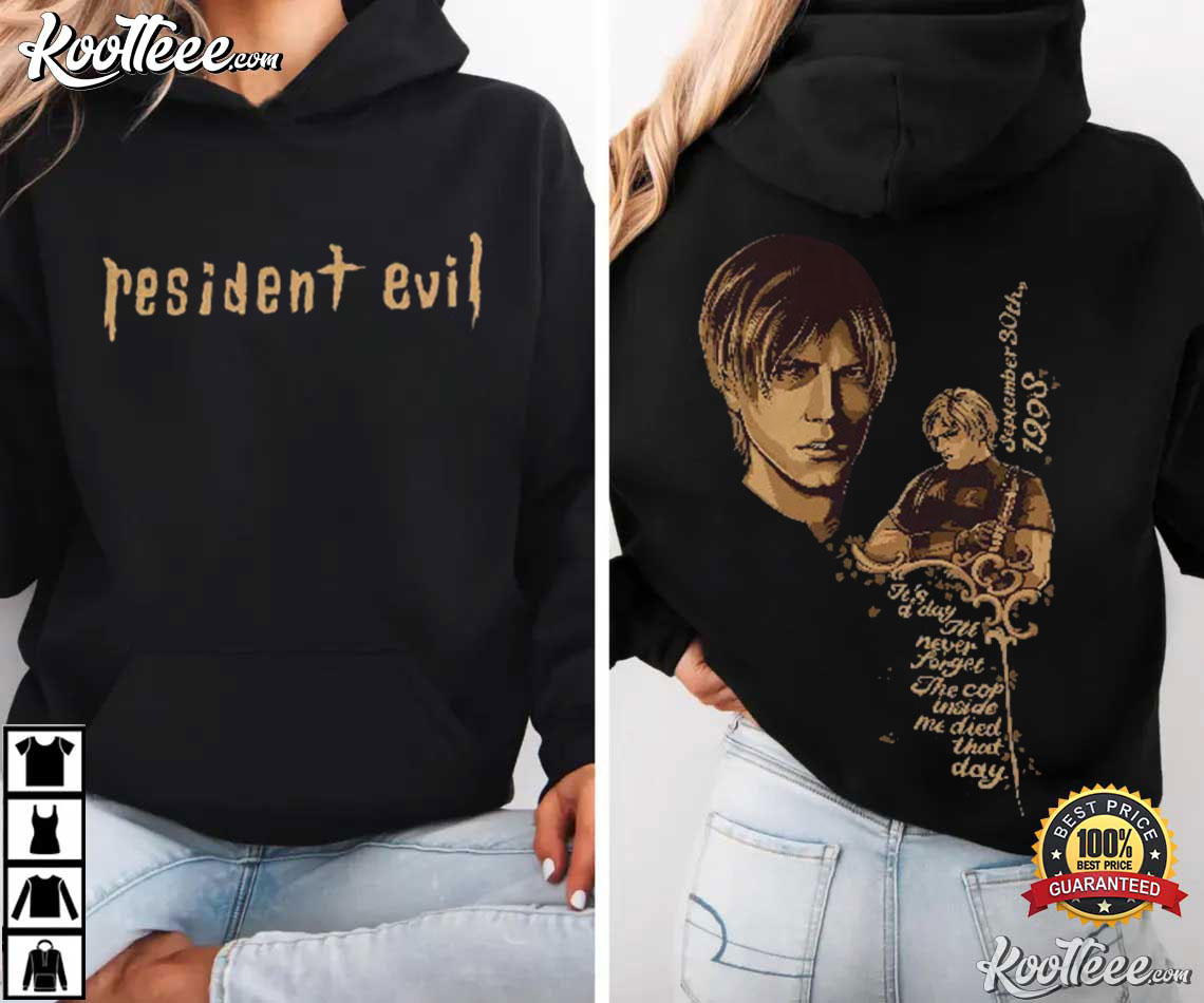 The Resident Evil Leon Kennedy Game T-Shirt has a retro-style picture that pays homage to this well-known character and is based on the look of old survival horror games. The front of the shirt includes the well-known Resident Evil logo, and the reverse has a detailed portrait of Leon. It captures the series’ dark mood and emotional storytelling that made it famous.
