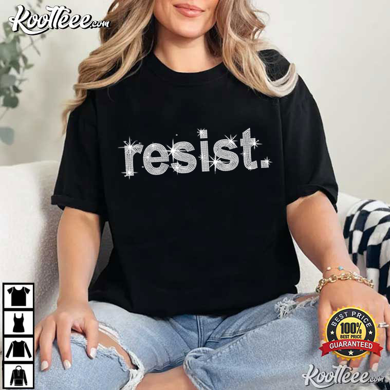 Some things don’t need to be explained. They only need to be seen. The Resist Rhinestone Political Protest T-Shirt takes one of the most popular phrases in modern activism and makes it look like it was made on purpose, with confidence, and in a way that is clearly current. No slogans on top of each other. No mess. A single word—resist—was written in sparkling rhinestones that catch the light without making the message less clear.
