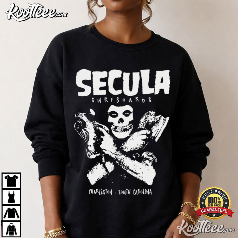 Secula Surfboards Skull Charleston South Carolina T-Shirt – black graphic tees, vintage t shirts