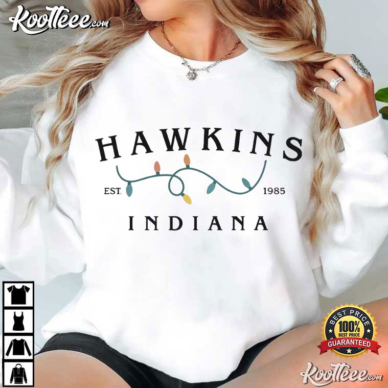 The Stranger Things Hawkins Indiana Retro T-Shirt is a tribute to the made-up town that started it all. This design is simple, nostalgic, and clearly from the 1980s. It celebrates Hawkins not as a place full of monsters, but as a little Midwestern town with friends, secrets, and late-night bike rides.