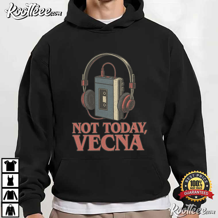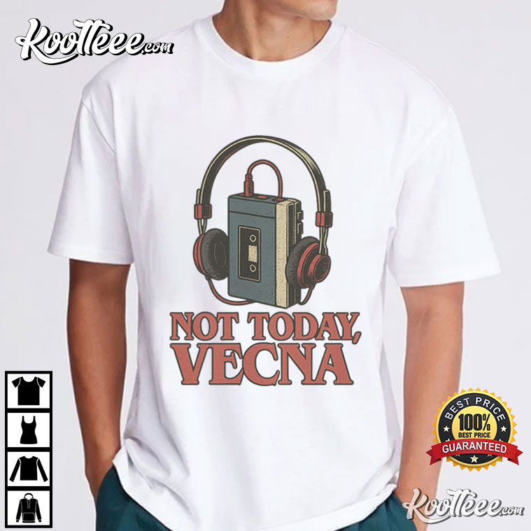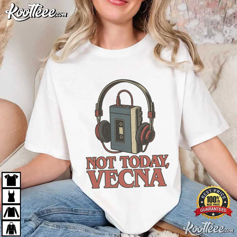 The Stranger Things Not Today The Vecna Retro Cassette Tape T-Shirt is a love letter to the music scene of the 1980s and a subtle nod to one of the most famous survival emblems in modern sci-fi. This shirt has a bright image of a tape and headphones along with the words “Not Today, Vecna.” It combines nostalgia, humor, and fandom into a design that is easy to read from across the room.