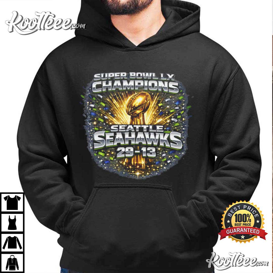 This shirt conveys a feeling that every fan knows: the moment you visualize the win before it happens. The Seattle Seahawks 2026 Victory Logo T-Shirt for the Super Bowl LX Champions is designed in a classic championship style, with big letters, a trophy in the middle, and colors that make you think of Seattle football right away.