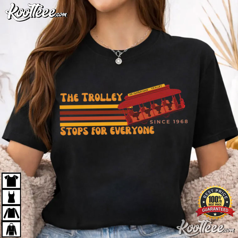 The Trolley Stops For Everyone Mr Rogers Tribute Activist T-Shirt – black graphic tees, vintage t shirts