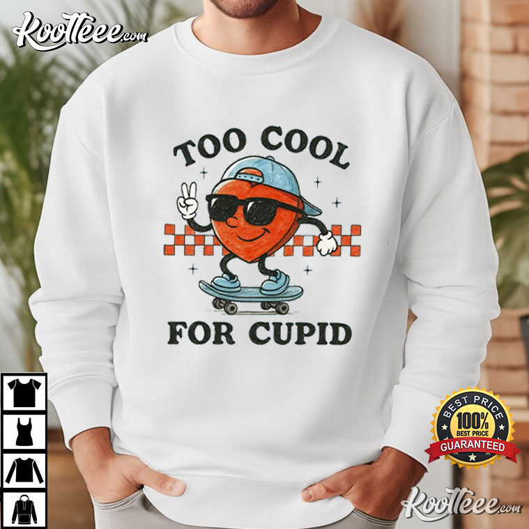 Too Cool For Cupid Heart Valentine's Day T-Shirt – Valentines Day shirt, Shirt for Valentine’s Day