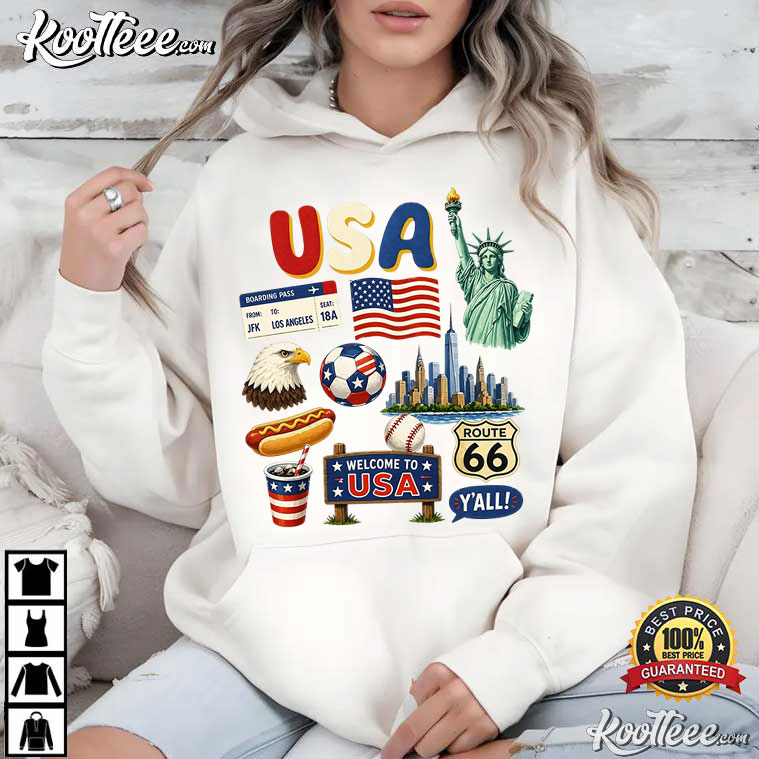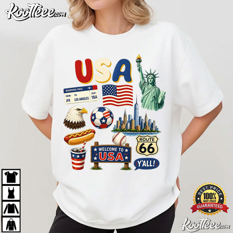 The USA Soccer Fan 2026 National Football Tournament T-Shirt is a colorful collage-style shirt filled with great American icons to get you excited. From the Statue of Liberty to Route 66, from metropolitan skylines to classic sports imagery, this shirt blends all that makes the U.S. feel larger than life – on and off the pitch.